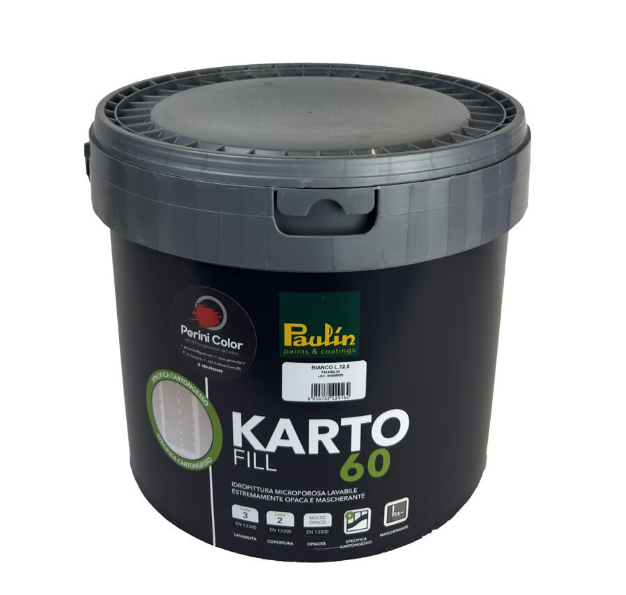 Se hai pareti in cartongesso o rasature a gesso e vuoi un risultato davvero impeccabile, Kartofill 60 di Paulin è la soluzione che fa per te. Si tratta di una pittura lavabile per interni formulata appositamente per ottenere superfici estremamente opache e uniformi, anche nei punti più critici.